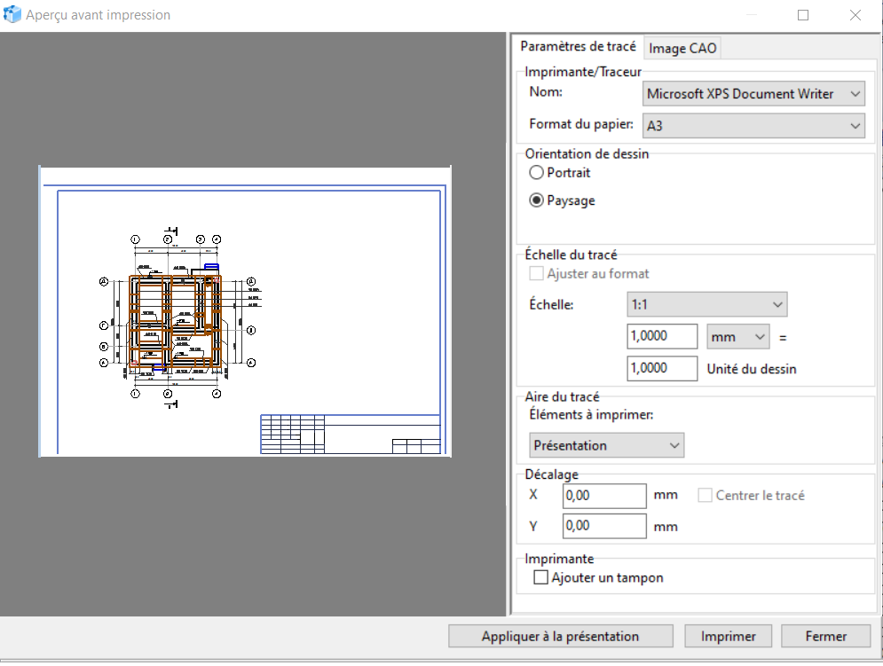 Voici la préparation des dessins à l'impression sur les présentations avec l'utilisation des paramètres de la boîte de dialogue Paramètres de tracé :